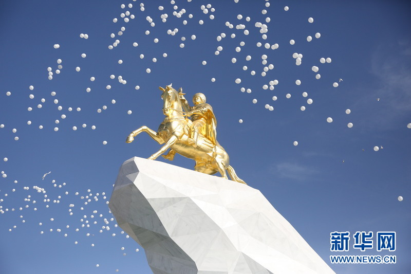 土庫(kù)曼斯坦總統(tǒng)金像落成 路中央雕塑成時(shí)尚(高清組圖)