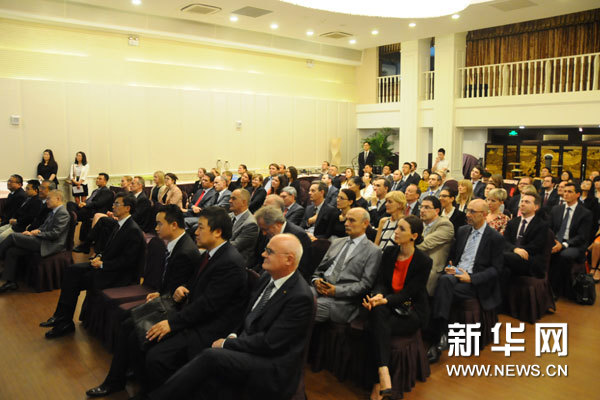 ??? 7月16日,第十屆歐洲外交官研討班開班儀式暨《中國歐盟建交40周年》紀(jì)念畫冊發(fā)行儀式在京舉行,共有31位來自歐洲各國及歐盟機構(gòu)的駐華使節(jié)出席研討班開班儀式。 新華網(wǎng)記者 張藝 攝