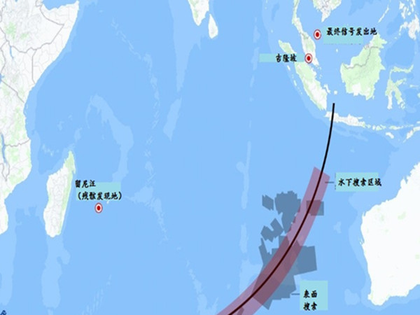 目前的搜索工作集中在西澳大利亞沿海,這個弧形的搜索區(qū)域是調(diào)查人員根據(jù)掌握數(shù)據(jù)計算出的結(jié)果。