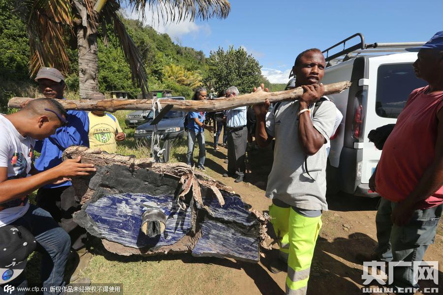 當?shù)貢r間2015年8月11日,法屬留尼汪島,當?shù)厮丫汝牜@得的馬航MH370殘骸。