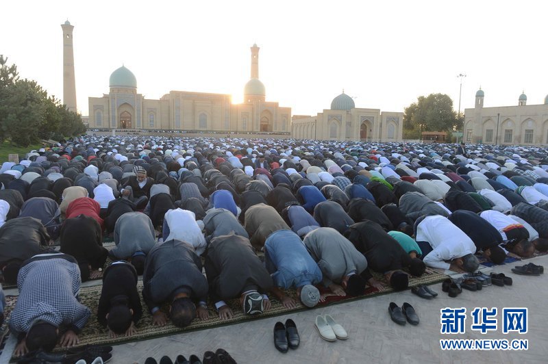 9月24日,在烏茲別克斯坦首都塔什干哈斯特·伊瑪姆建筑群清真寺廣場(chǎng),人們參加古爾邦節(jié)禮拜。當(dāng)天,烏茲別克斯坦各地慶祝伊斯蘭教傳統(tǒng)節(jié)日古爾邦節(jié)?!肮艩柊罟?jié)”亦稱“宰牲節(jié)”,是伊斯蘭教三大節(jié)日之一。 新華社記者沙達(dá)提 攝