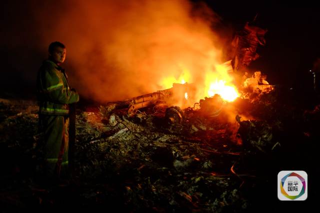 2014年7月17日,在烏克蘭東部地區(qū),一名消防員在馬航客機(jī)墜毀現(xiàn)場(chǎng)滅火。 新華社/法新