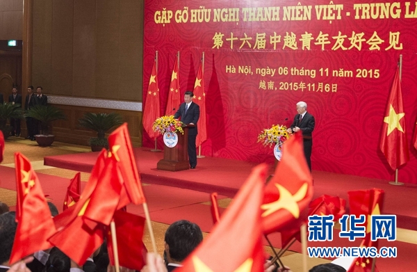 11月6日,中共中央總書記、國家主席習(xí)近平和越共中央總書記阮富仲在河內(nèi)共同會(huì)見參加第十六屆中越青年友好會(huì)見活動(dòng)的中越青年代表。新華社記者李學(xué)仁攝