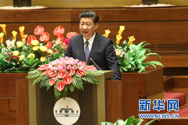 ???? 11月6日,中共中央總書記、國家主席習(xí)近平在越南國會發(fā)表題為《共同譜寫中越友好新篇章》的重要演講。 新華社記者 龐興雷 攝