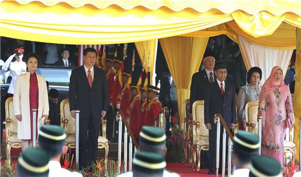 圖為2013年10月4日,習(xí)近平出席馬來(lái)西亞最高元首舉行的歡迎儀式。(龐興雷攝)