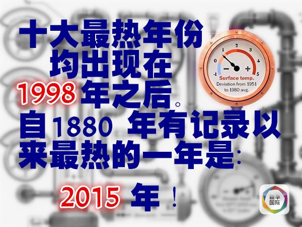 由于厄爾尼諾等現(xiàn)象的作用,地球每年平均氣溫略有差異不足為奇。但縱觀1880年有可靠記錄以來的歷年氣溫狀況可以看出,地球表面溫度呈爬高之勢,10個氣溫最高的年份都出現(xiàn)在1998年之后,而2015年是目前為止最熱的一年。
