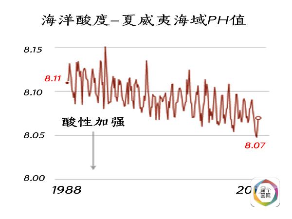 美國國家海洋和大氣管理局數(shù)據(jù)顯示,海洋平均pH值已經(jīng)從工業(yè)革命之前的8.21,變?yōu)槿缃竦牟坏?.1。這一數(shù)值變化表明,海水的酸度升高了大約30%。
