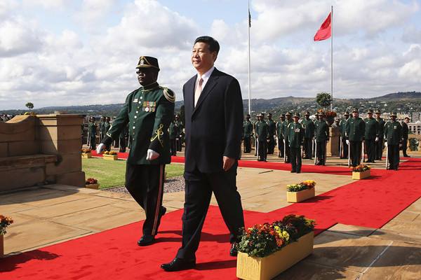 2013年3月26日,南非總統(tǒng)祖馬在比勒陀利亞聯(lián)邦大廈前廣場舉行儀式,歡迎中國國家主席習近平訪問南非。( 新華社記者蘭紅光攝)