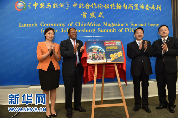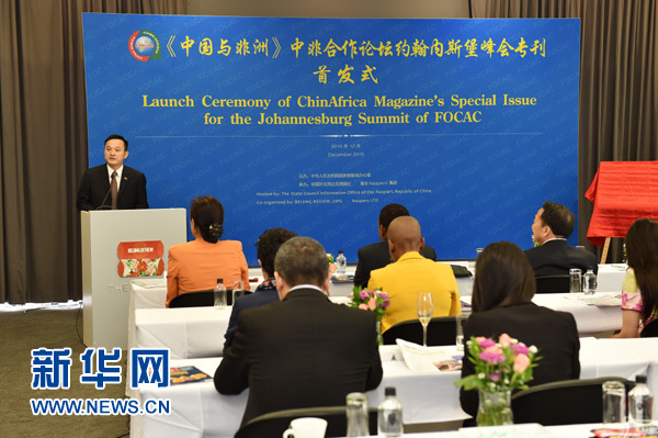 12月3日在南非約翰內(nèi)斯堡拍攝的《中國與非洲》雜志約翰內(nèi)斯堡峰會專刊首發(fā)式現(xiàn)場。新華社記者 孫瑞博攝