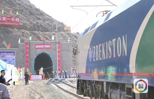 2016年2月27日,一列專(zhuān)列停在烏茲別克斯坦安格連-帕普鐵路卡姆奇克隧道進(jìn)口。( 新華社記者沙達(dá)提攝)