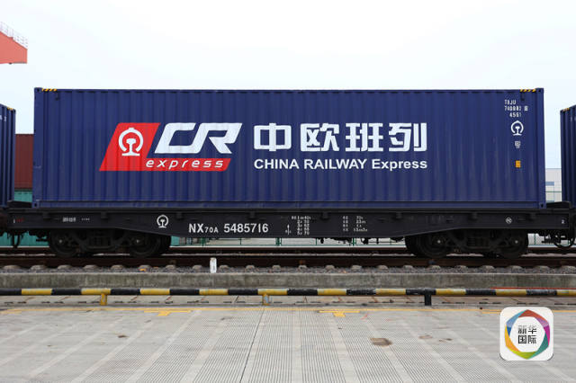 2016年6月8日,采用統(tǒng)一品牌標(biāo)識(shí)的中歐班列準(zhǔn)備從浙江義烏火車(chē)西站開(kāi)出。(新華社發(fā),周建國(guó)攝)