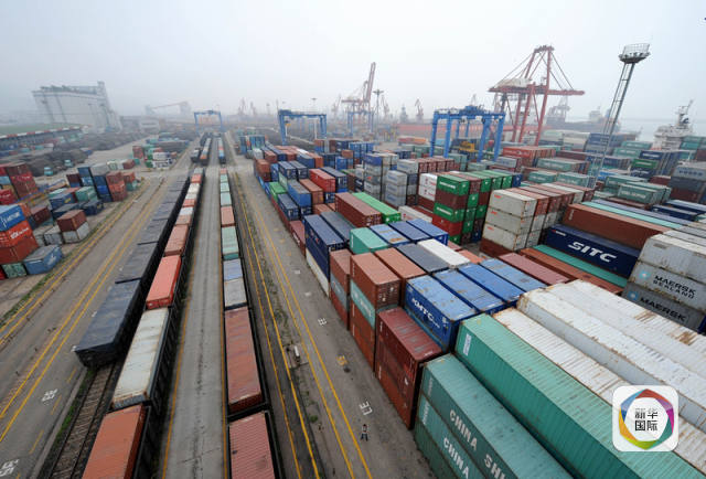 這張2014年6月27日拍攝的照片顯示,在連云港港區(qū)內(nèi)的新亞歐大陸橋鐵路運(yùn)輸專(zhuān)線站場(chǎng),準(zhǔn)備運(yùn)往哈薩克斯坦的過(guò)境集裝箱在裝車(chē)。(新華社記者孫參攝)