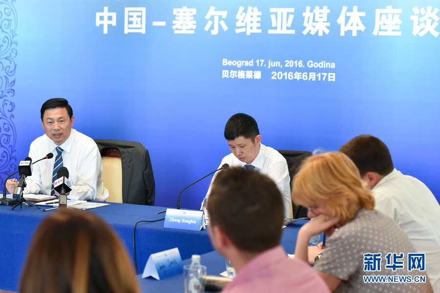 6月17日,在塞爾維亞首都貝爾格萊德召開的中國—塞爾維亞媒體座談會上,中國國務院新聞辦公室副主任郭衛(wèi)民(后左一)同與會的中塞媒體代表進行交流。當天,由中國國務院新聞辦公室主辦的中國—塞爾維亞媒體座談會在塞爾維亞首都貝爾格萊德舉行,中國國務院新聞辦副主任郭衛(wèi)民和來自中塞主流媒體的十多位高層人士出席。 新華網記者 錢一 攝