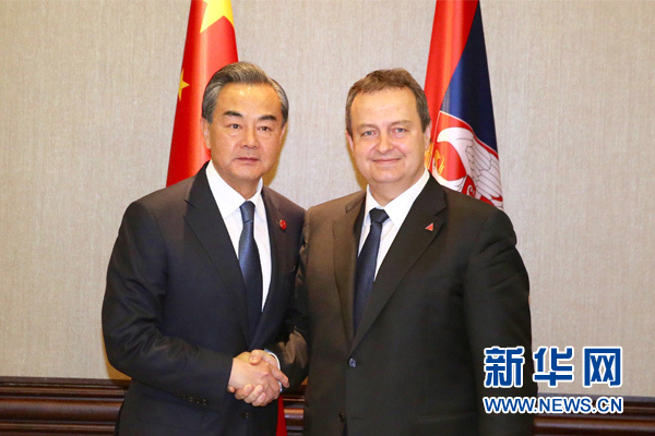 6月17日,中國外交部長王毅(左)在貝爾格萊德應(yīng)約會見塞爾維亞第一副總理兼外長達契奇。 新華社記者丁林攝
