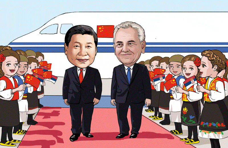 6月17日,國家主席習(xí)近平抵達(dá)貝爾格萊德開始對(duì)塞爾維亞進(jìn)行國事訪問。戰(zhàn)機(jī)護(hù)航、塞爾維亞總統(tǒng)尼科利奇夫婦、議長戈伊科維奇和總理武契奇等親自到機(jī)場迎接,體現(xiàn)了東道主對(duì)習(xí)主席來訪的高規(guī)格接待。習(xí)主席和夫人彭麗媛的第一場活動(dòng)就是前往中國駐南聯(lián)盟被炸使館舊址,憑吊在使館被炸事件中英勇犧牲的3位烈士。接下來,習(xí)近平主席同尼科利奇總統(tǒng)共同出席中國文化中心奠基儀式。