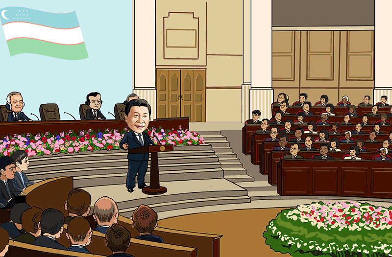 6月22日,正在烏茲別克斯坦訪問(wèn)的國(guó)家主席習(xí)近平在塔什干烏茲別克斯坦最高會(huì)議立法院發(fā)表題為《攜手共創(chuàng)絲綢之路新輝煌》的重要演講,提出構(gòu)建互利合作網(wǎng)絡(luò)、共創(chuàng)新型合作模式、打造多元合作平臺(tái)、推進(jìn)重點(diǎn)領(lǐng)域項(xiàng)目的新主張,為推動(dòng)“一帶一路”向更高水平、更廣空間邁進(jìn)指明了方向。當(dāng)天,習(xí)主席和卡里莫夫總統(tǒng)在塔什干共同出席“安格連-帕普”鐵路隧道的通車視頻連線活動(dòng)。