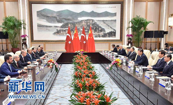 習(xí)近平指出,去年,土耳其成功舉辦了二十國集團(tuán)領(lǐng)導(dǎo)人安塔利亞峰會(huì),并同中方就籌備杭州峰會(huì)保持了良好溝通。在雙方共同努力下,我同總統(tǒng)先生達(dá)成的關(guān)于推動(dòng)中土雙邊關(guān)系發(fā)展的許多共識(shí)已經(jīng)或者正在得到落實(shí),取得可喜成果。中方愿以今年中土建交45周年為契機(jī),同土方一道努力,推動(dòng)中土戰(zhàn)略合作關(guān)系得到更大發(fā)展。中土關(guān)系發(fā)展前景令人期待。