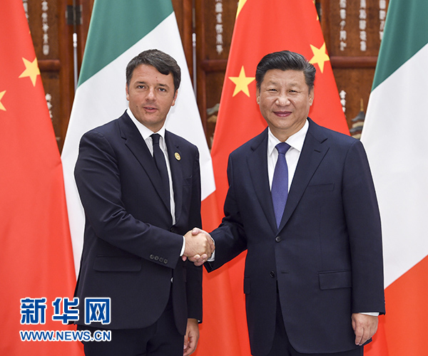 習(xí)近平歡迎倫齊來(lái)華出席二十國(guó)集團(tuán)領(lǐng)導(dǎo)人杭州峰會(huì)。習(xí)近平指出,近年來(lái),中意關(guān)系取得長(zhǎng)足進(jìn)步,雙方秉承相互尊重、互利共贏精神,深化政治互信,擴(kuò)大務(wù)實(shí)合作,使兩國(guó)人民獲得實(shí)實(shí)在在的利益。中方愿同意方攜手努力,不斷推進(jìn)兩國(guó)全面戰(zhàn)略伙伴關(guān)系向前發(fā)展。我們要堅(jiān)持兩國(guó)戰(zhàn)略互信大方向,尊重彼此核心利益和重大關(guān)切,密切兩國(guó)政府、議會(huì)、政黨交流合作。要堅(jiān)持互利共贏原則,優(yōu)勢(shì)互補(bǔ),實(shí)現(xiàn)共同發(fā)展。中方歡迎意方積極參與“一帶一路”建設(shè)。我們要以古老文明為依托,密切人文交流,深化傳統(tǒng)友誼。要加強(qiáng)在國(guó)際和地區(qū)事務(wù)中的協(xié)調(diào)和配合,努力構(gòu)建以合作共贏為核心的新型國(guó)際關(guān)系。要將中歐和平、增長(zhǎng)、改革、文明四大伙伴關(guān)系落到實(shí)處,共同維護(hù)中歐關(guān)系良好發(fā)展勢(shì)頭。