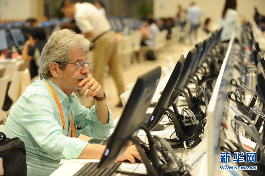 工商峰會(huì)開幕 新聞中心內(nèi)專注而忙碌的記者們