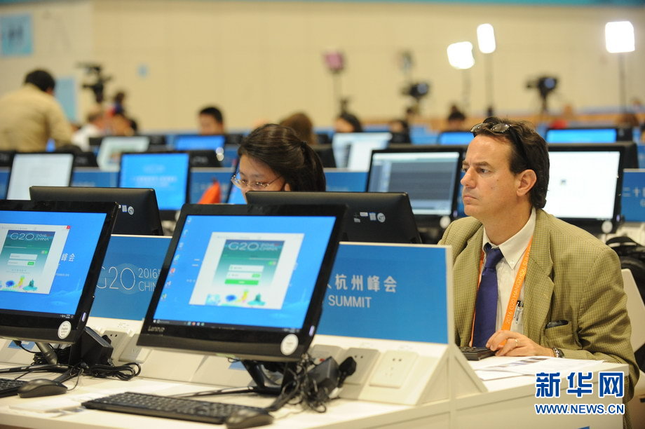 二十國集團領導人第十一次峰會9月4日至5日在浙江杭州舉行。峰會新聞中心一派繁忙景象,境內(nèi)外各路媒體記者使出“洪荒之力”,實時報道峰會動態(tài)。新華網(wǎng)記者 陳競超 攝
