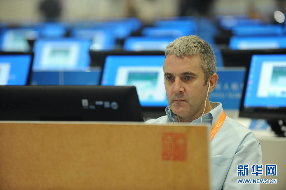 二十國集團領(lǐng)導(dǎo)人第十一次峰會9月4日至5日在浙江杭州舉行。峰會新聞中心一派繁忙景象,境內(nèi)外各路媒體記者使出“洪荒之力”,實時報道峰會動態(tài)。新華網(wǎng)記者 陳競超 攝