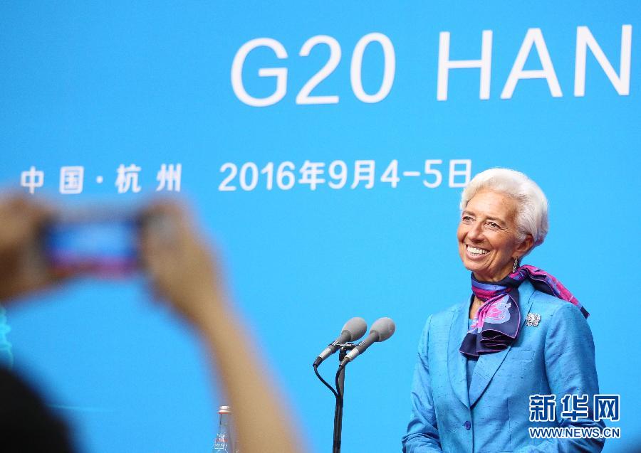 9月5日,國際貨幣基金組織總裁拉加德在二十國集團(tuán)(G20)杭州峰會新聞中心舉行新聞發(fā)布會。 新華社記者劉穎攝