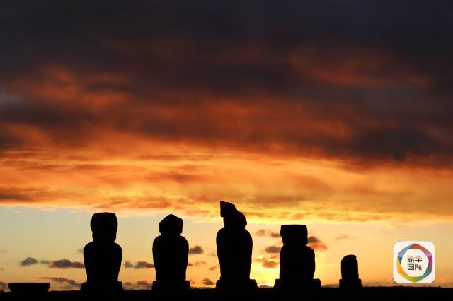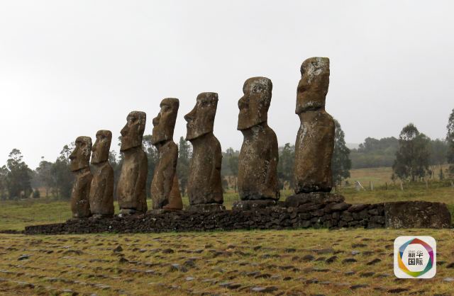 復(fù)活節(jié)島上的巨人石像排成一列。(新華社記者葉書宏攝)
