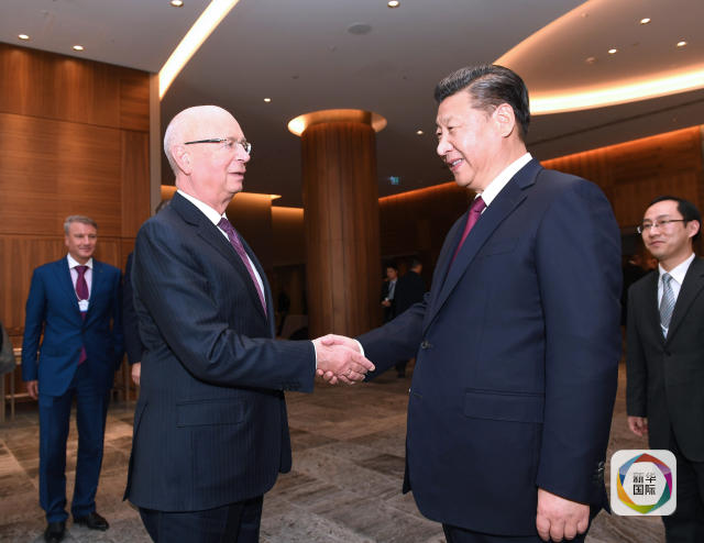 1月17日,國(guó)家主席習(xí)近平在瑞士達(dá)沃斯會(huì)見世界經(jīng)濟(jì)論壇主席施瓦布。新華社記者饒愛民攝