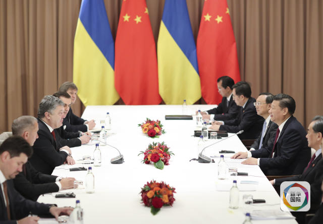1月17日,國家主席習近平在瑞士達沃斯會見烏克蘭總統(tǒng)波羅申科。(新華社記者 丁林 攝)