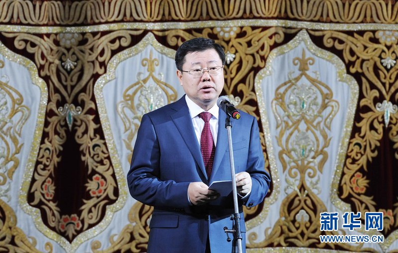 ? 1月18日晚,烏茲別克斯坦首都塔什干人民友誼宮,中國(guó)駐烏茲別克斯坦大使孫立杰在講話。新華網(wǎng)記者 沙達(dá)提 攝