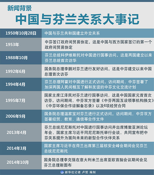 圖表:新聞背景:中國與芬蘭關(guān)系大事記 新華社記者 盧哲 編制