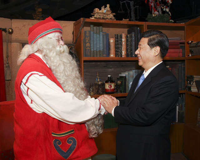 2010年3月,時任國家副主席習(xí)近平前往芬蘭北部地區(qū)羅瓦涅米市,對當(dāng)?shù)剡M(jìn)行實地考察訪問。羅瓦涅米是圣誕老人的故鄉(xiāng)。(新華社記者蘭紅光攝)