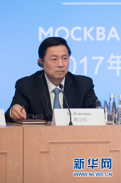 7月4日,國(guó)務(wù)院新聞辦副主任郭衛(wèi)民在第三屆中俄媒體論壇上聆聽報(bào)告。新華社記者 吳壯 攝