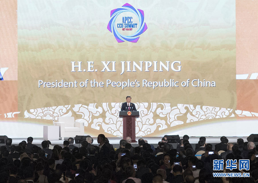 2017年亞太經(jīng)合組織工商領(lǐng)導(dǎo)人峰會(huì)10日在越南峴港舉行。國(guó)家主席習(xí)近平發(fā)表題為《抓住世界經(jīng)濟(jì)轉(zhuǎn)型機(jī)遇 謀求亞太更大發(fā)展》的主旨演講。