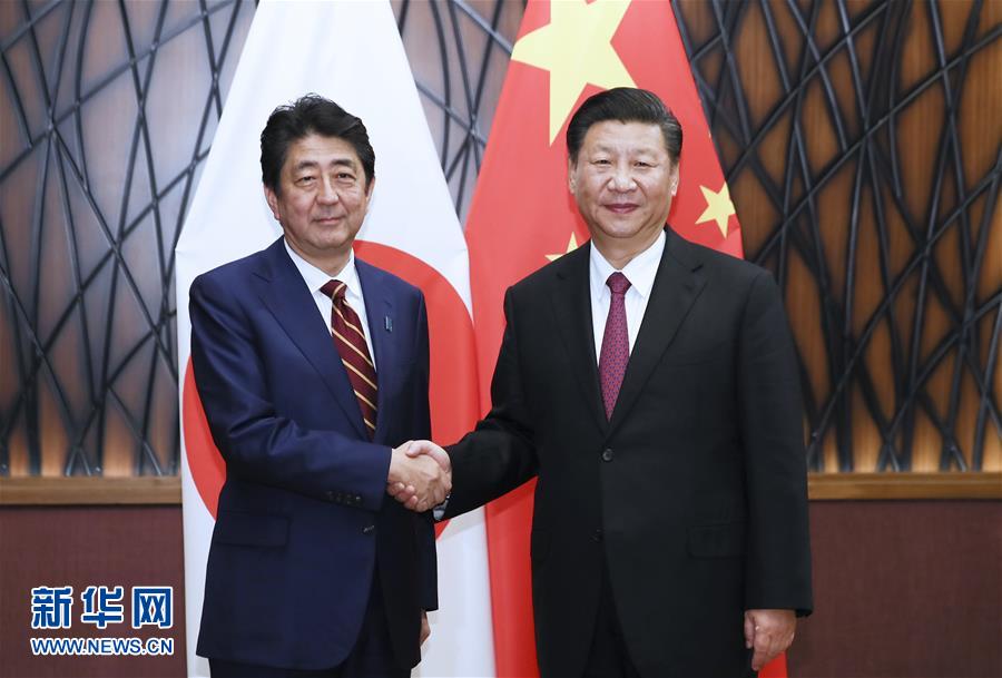 ? ?11月11日,國家主席習近平在越南峴港會見日本首相安倍晉三。新華社記者 馬占成 攝