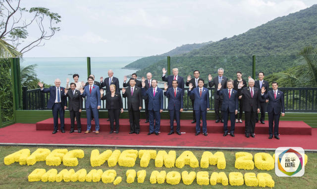 11月11日,亞太經(jīng)合組織第二十五次領(lǐng)導(dǎo)人非正式會議在越南峴港舉行。國家主席習(xí)近平出席并發(fā)表題為《攜手譜寫亞太合作共贏新篇章》的重要講話。這是會議期間,國家主席習(xí)近平同其他亞太經(jīng)合組織成員經(jīng)濟體領(lǐng)導(dǎo)人、代表合影。新華社記者李濤攝