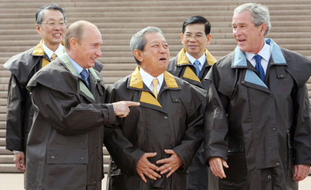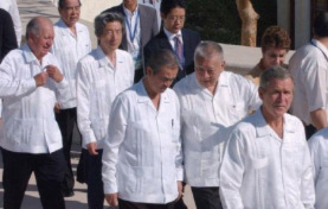 1993年,首屆APEC領(lǐng)導(dǎo)人非正式會(huì)議在美國西雅圖召開。各經(jīng)濟(jì)體領(lǐng)導(dǎo)人不帶助手和隨身翻譯,不穿正裝。從那以后,在一年一度的APEC領(lǐng)導(dǎo)人非正式會(huì)議期間,東道主通常會(huì)為與會(huì)領(lǐng)導(dǎo)人提供特別制作的當(dāng)?shù)貍鹘y(tǒng)服裝,在宣介東道主傳統(tǒng)文化的同時(shí),也體現(xiàn)“亞太大家庭”的理念。