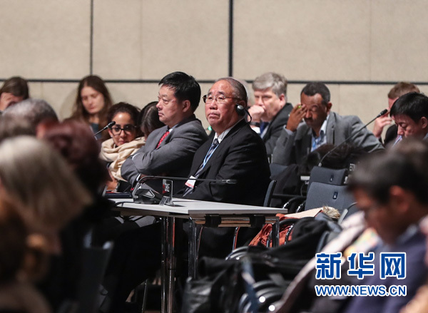 11月18日,在德國波恩,中國代表團(tuán)團(tuán)長、中國氣候變化事務(wù)特別代表解振華(中右)出席閉幕會(huì)議。新華社記者 單宇琦 攝
