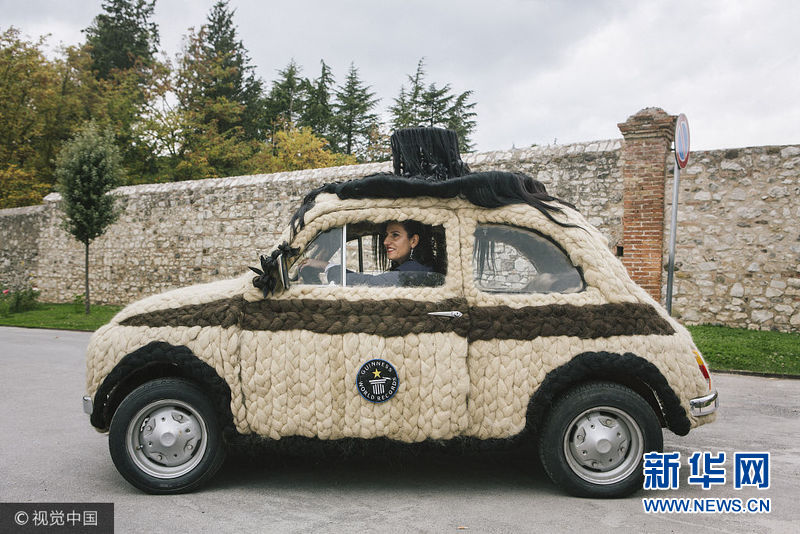 意大利帕杜拉,一位意大利發(fā)型設(shè)計師Maria Lucia Mugno花費(fèi)了超過8萬英鎊來裝飾自己的車子,這讓她獲得了吉尼斯世界紀(jì)錄。這項工程需要150個小時來完成,用于裝飾的頭發(fā)總重量達(dá)到100公斤。(圖片來源:視覺中國)