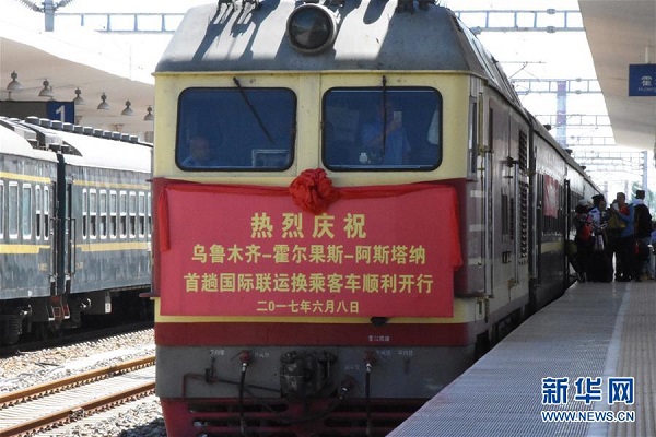 6月8日,旅客們開始登上開往哈薩克斯坦阿斯塔納的9001次國際旅客列車。當(dāng)日,隨著開往哈薩克斯坦阿斯塔納的9001次國際旅客列車駛出站臺,新疆霍爾果斯至阿斯塔納客運鐵路正式投入運行。這標志著繼新疆阿拉山口鐵路口岸之后,中哈兩國開行又一條新的鐵路客運通道。新華社記者 張曉龍 攝