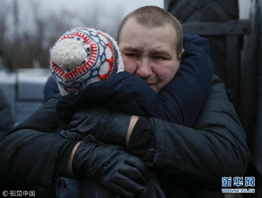 12月27日,烏克蘭哈爾科夫,獲釋戰(zhàn)俘抵達(dá)哈爾科夫。烏克蘭政府軍與東部民間武裝當(dāng)日舉行了大規(guī)模的交換戰(zhàn)俘行動。(圖片來源:視覺中國)