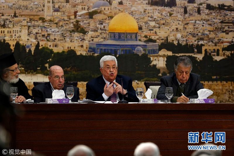 1月14日,約旦河西岸拉馬拉,巴勒斯坦總統(tǒng)阿巴斯在巴勒斯坦中央委員會(huì)會(huì)議上發(fā)表講話,并稱以色列已經(jīng)“終止”了奧斯陸協(xié)議。(圖片來源:視覺中國(guó))