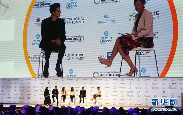 1月15日,在阿聯(lián)酋阿布扎比舉行的2018世界未來能源峰會(huì)開幕式現(xiàn)場,五名來自不同國家和地區(qū)的青年代表就可持續(xù)發(fā)展等議題進(jìn)行討論。 新華社記者蘇小坡 攝