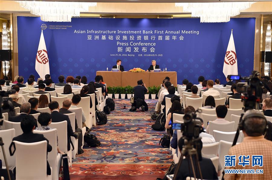 亞洲基礎(chǔ)設(shè)施投資銀行首屆年會在北京舉行新聞發(fā)布會(2016年6月25日攝)。新華社記者 李鑫 攝