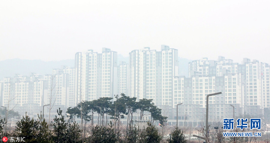 韓國多地出現(xiàn)重霧霾天氣 灰蒙一片能見度極低