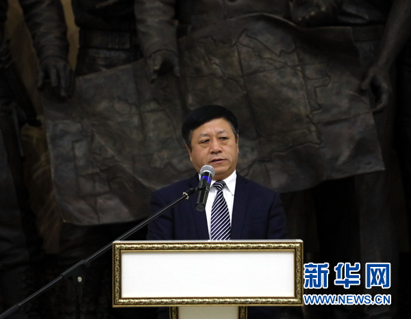中國(guó)駐哈薩克斯坦大使張漢暉在圖片展開幕式上致辭。新華網(wǎng)發(fā)