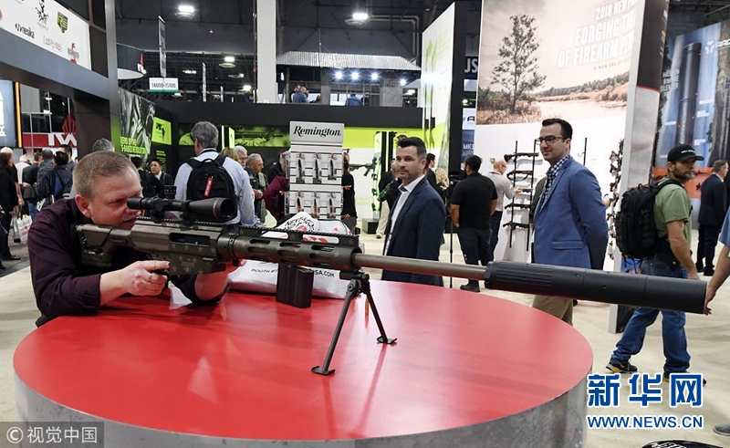 當(dāng)?shù)貢r(shí)間2018年1月23日,美國拉斯維加斯,美國全國射擊運(yùn)動(dòng)基金會(NSSF)舉辦槍支展銷會。(圖片來源:視覺中國)