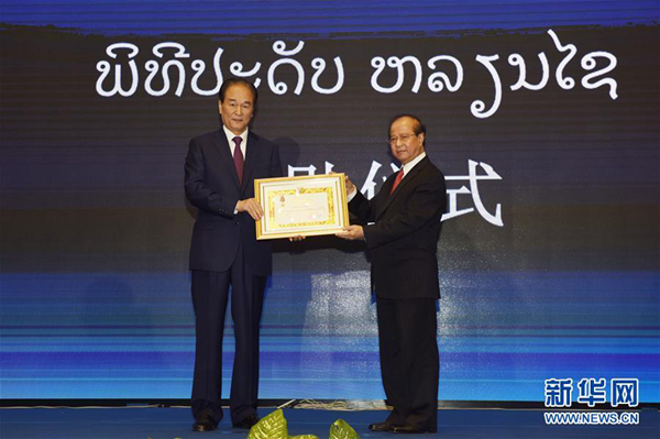 2月2日,在老撾首都萬象舉行的首屆“一帶一路”老-中合作論壇開幕式上,老撾政府向新華社及新華社社長蔡名照分別授予自由勛章,以表彰新華社長期以來為加強(qiáng)老中合作關(guān)系以及為老撾國家通訊社發(fā)展所作的積極貢獻(xiàn)。首屆“一帶一路”老-中合作論壇2日在老撾首都萬象開幕。論壇圍繞中共中央總書記、國家主席習(xí)近平去年11月對(duì)老撾進(jìn)行國事訪問達(dá)成的各項(xiàng)成果,探討“一帶一路”倡議與老撾國家發(fā)展戰(zhàn)略對(duì)接,共商中老發(fā)展合作大計(jì)。新華社記者 秦晴 攝