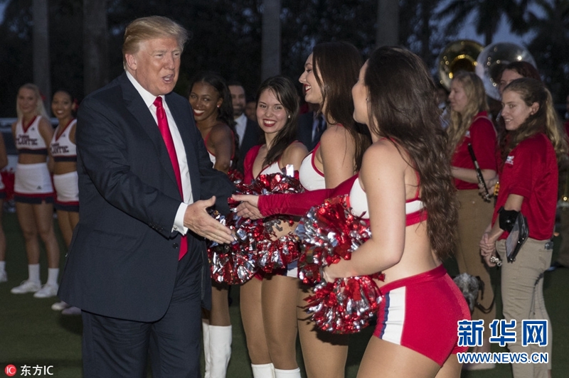 當(dāng)?shù)貢r間2018年2月4日,美國佛州西棕櫚灘,美國總統(tǒng)特朗普與第一夫人梅拉尼婭在高爾夫俱樂部觀看大學(xué)生樂隊的歡迎演出,與美女啦啦隊員握手。據(jù)悉,特朗普夫婦出席在該俱樂部舉辦的超級碗派對。(圖片來源:東方IC)