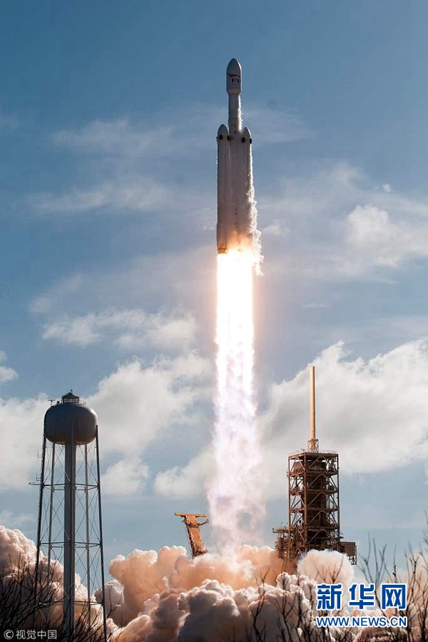 當地時間2018年2月6日,美國佛州卡納維拉爾角,美國重型運載火箭“獵鷹重型”6日攜帶一輛特斯拉跑車發(fā)射升空。(圖片來源:視覺中國)
